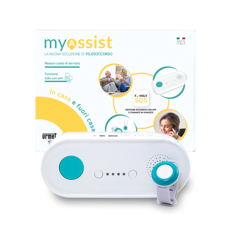 Gli assistenti ricevono sull’app FamilySOS le notifiche degli allarmi, possono aprire una conversazione in vivavoce sul terminale e, in caso l’assistito possegga uno smartphone, possono impostare promemoria medicinali e attività e geolocalizzare l’assistito. MYOSOS è fornito di SIM e collegamento al servizio incluso per 3 mesi.