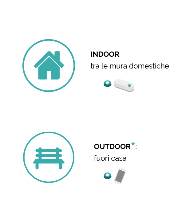 myoSOS garantisce il massimo della sicurezza, tra le mura domestiche (INDOOR), fuori casa e in ogni altra condizione (OUTDOOR).